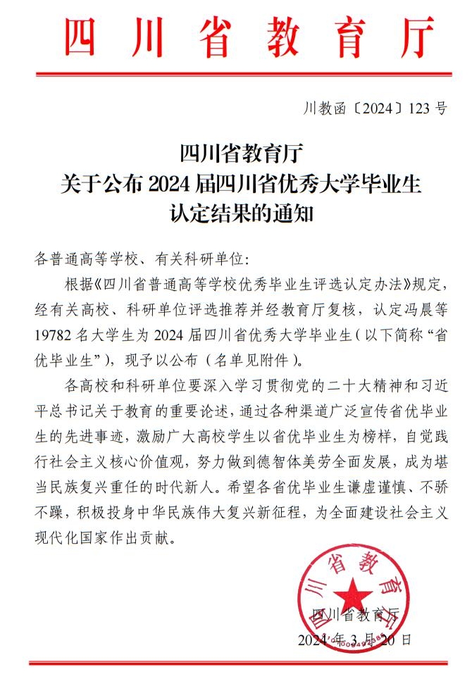 近期,2024届四川省优秀大学毕业生认定结果出炉。经班级和院系推荐、学校审核、教育厅复核,共计认定19782名大学生为2024届四川省优秀大学毕业生。四川工程职业技术大学共计173名学子上榜。
