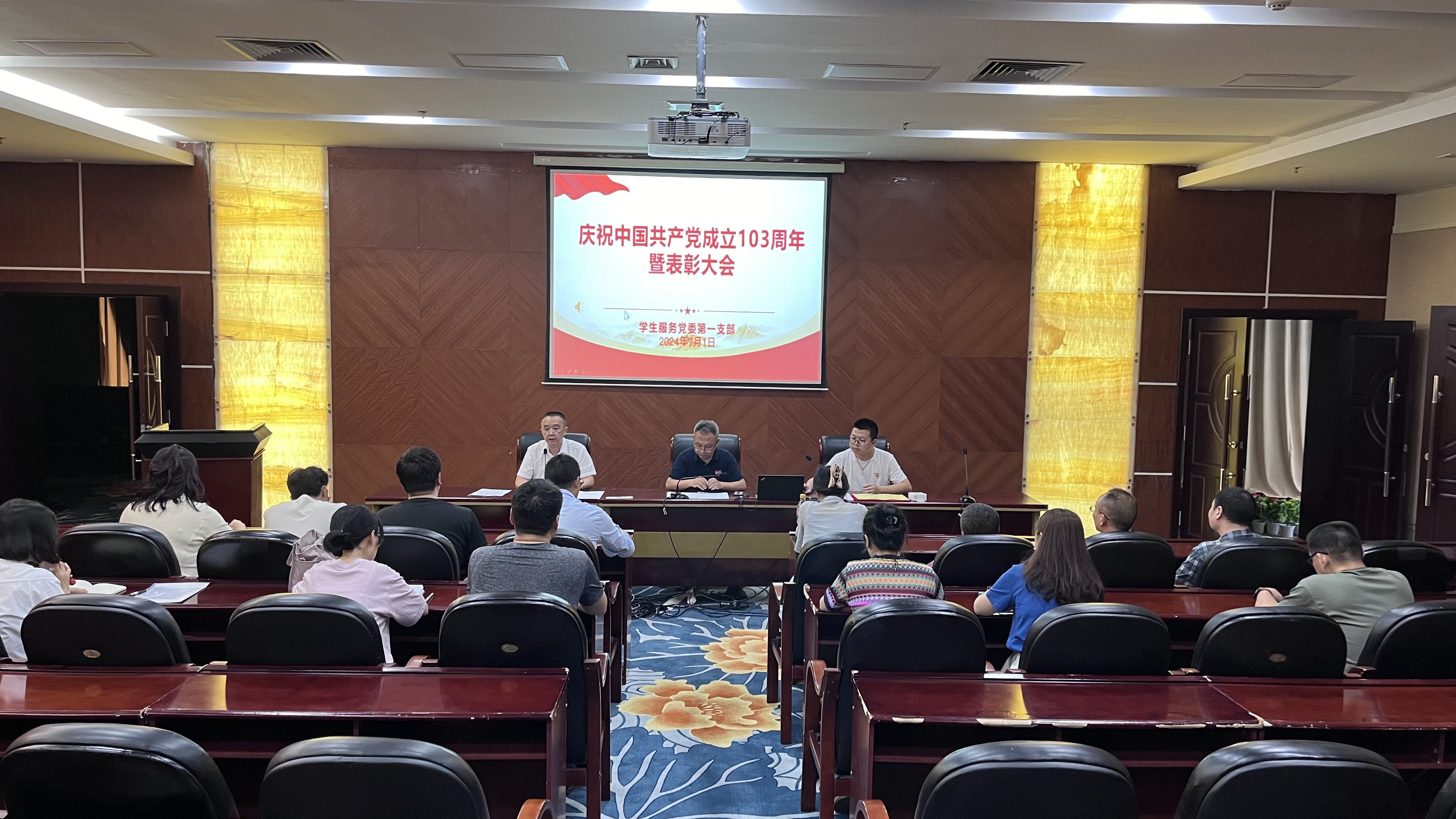 为庆祝中国共产党成立103周年,弘扬伟大建党精神,在“七一”建党纪念日当天,学生服务党委第一支部通过重温入党誓词,表彰先进,为党庆生。活动由学生服务党委第一支部书记唐军主持,学生服务党委书记廖秀勇及学生服务第一支部全体党员参加了此次主题党日活动。