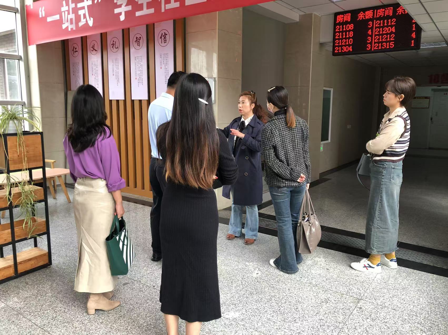 我校党委学生工作部部长、学生处处长唐军、学生服务党委书记廖秀勇以及宿管中心负责人接待了来访客人,陪同参观了尚学社区,介绍了社区建设情况。
