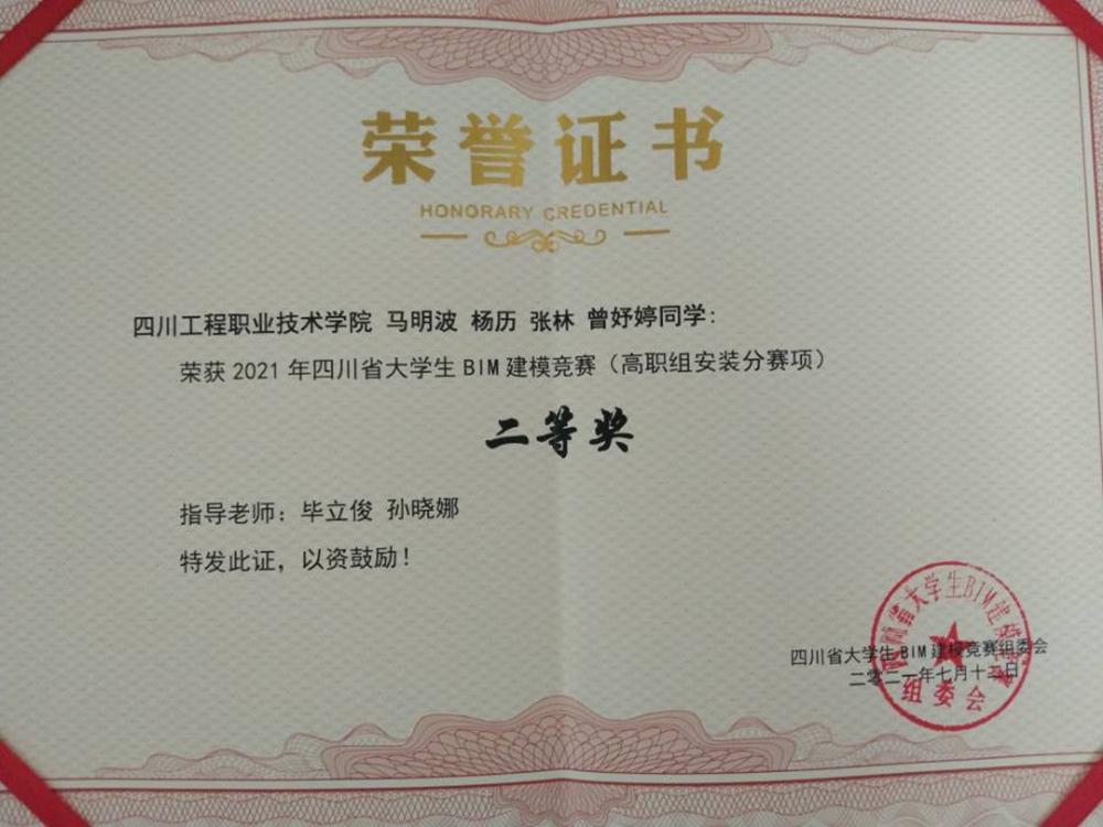 7月10-12日,由四川省教育厅主办、成都工业学院承办的2021年四川省大学生BIM建模竞赛在成都工业学院(宜宾校区)举行。本次比赛共有全省23所本科院校和26所高职院校参加,经过激烈角逐,我校两只代表队分别获得大赛土建组一等奖和安装组二等奖。