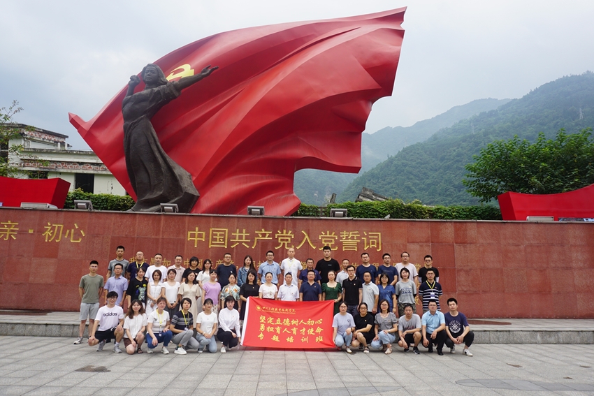 培训期间,参训学员参观了映秀镇震中地震遗址纪念馆——漩口中学遗址并开展了现场教学。在身临其境的环境和地震亲历幸存者的讲述中深刻地感受了灾难的可怕,但同时也对地震救援中党的核心领导力量拥有着无比的信心,对抗震救灾官兵和组织自救互救党员干部和群众抱有着无比的崇敬,许多老师在听着他们的故事过程中潸然泪下,也对当下活着的生命和生活更加地珍惜。全体参训学员的党员同志在宣誓广场的“母亲.初心”雕塑下重温了入党誓词。