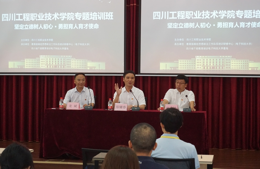 7月13日至15日,四川工程职业技术学院“坚持立德树人初心 勇担育人育才使命”专题培训班顺利进行,此次培训依托教育部高校思想政治工作队伍培训研修中心(电子科技科大)、四川省干部教育培训电子科技大学基地开展,来自学生处及全校各系从事学生思想政治教育工作的50名教师参加培训。校党委副书记、纪委书记郑辅春,党委委员、学生处处长龙斌,电子科技大学公共管理学院党委书记郑宇涛出席开班仪式。