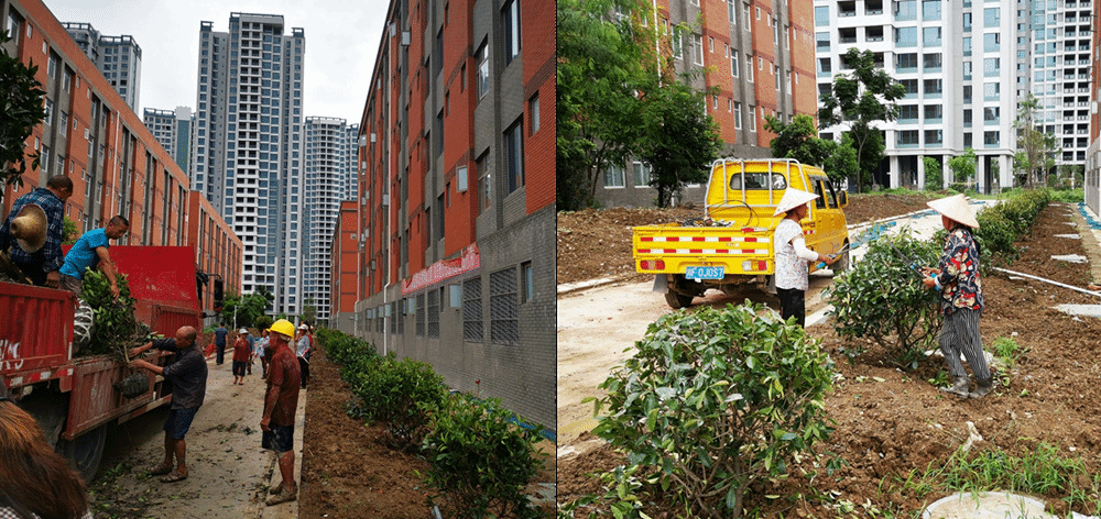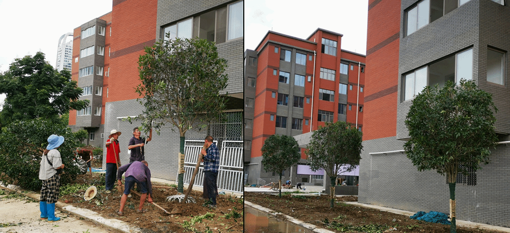 按照要求,新建两栋学生宿舍的环境美化须在8月25日前完成。在时间紧、任务重的情况下,学校后勤管理处精心组织施工,绿化组、环卫组全体成员克服高温酷暑,加班加点赶进度。截止到8月20日,已完成工作量的95%以上,其中栽植乔木、樱花、红枫、腊梅、蓝花楹、小叶香樟、黄桷兰70株,灌木红叶石楠球、海桐球、杜鹃球、含笑、绣球140株,地被300余平方米,草坪7000余平方米,为按期完成新建学生宿舍环境美化工作打下来坚实的基础。
