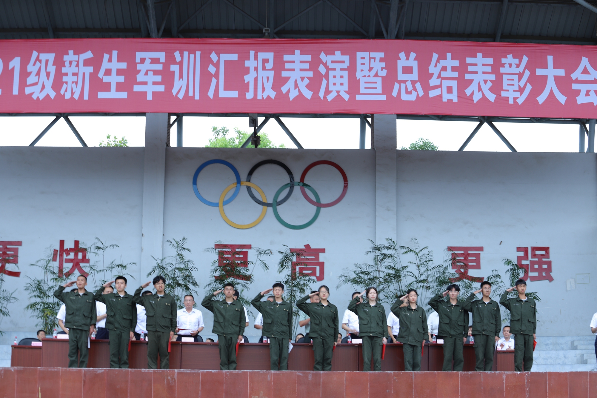 迈着整齐步伐,校园处处呈现飒爽英姿;唱响嘹亮口号,学子个个彰显满腔豪情。在历经14天的军训后,2021年9月18日下午15:00,我校2021级新生军训汇报表演暨总结表彰大会在田径运动场隆重举行。德阳市旌阳区委常委、人民武装部部长刘强上校,党委书记李登万教授,院长肖峰教授,学校其他党委委员、校领导,以及相关职能部门的党政领导,共同出席了大会。大会由学校党委副书记、纪委书记郑辅春主持。