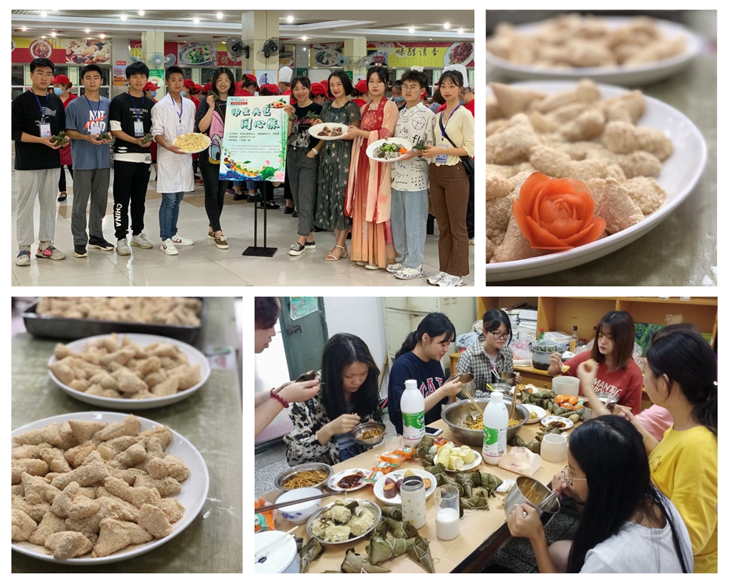 端午临中夏,时清日复长。为弘扬中华优秀传统文化和爱国主义精神,让师生感受传统端午佳节浓厚的节日气息, 6月8日-9日学生处宿管中心、后勤服务中心、校团委共同举办“师生共包同心粽”活动。