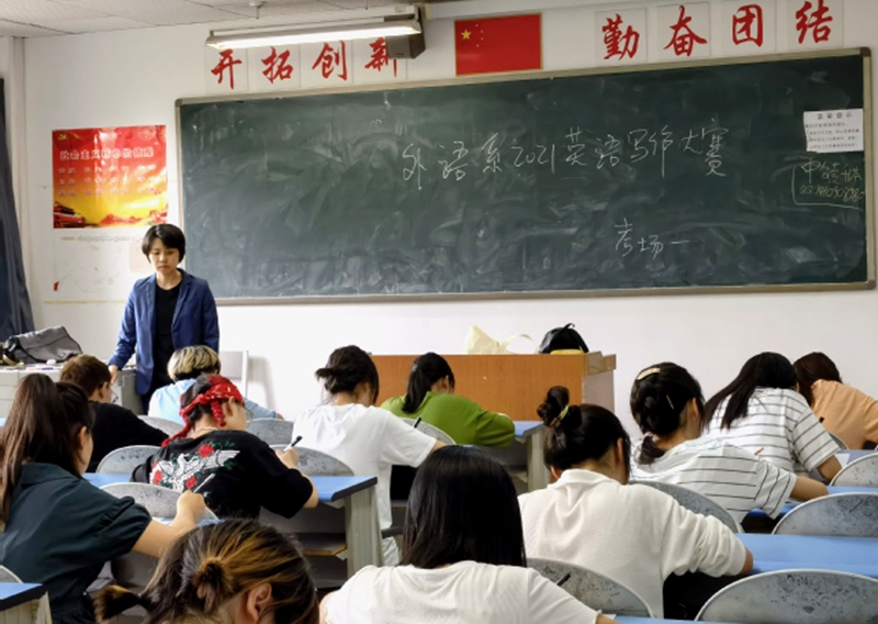 在伟大的中国共产党成立100周年之际,为积极营造良好的学习氛围,提升学生英语写作能力,6月1日下午,外语系在第一教学楼圆满举行了2021英语写作大赛。外语系170余名同学积极参加,认真比赛。