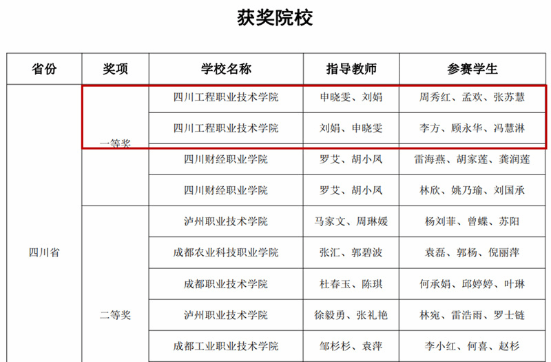 大赛通过“企业日常涉税业务办理”及“企业所得税汇算清缴”两部分岗位工作内容,考察参赛团队掌握运用现行税收法律法规知识从事企业日常纳税业务和涉税业务管理工作,包括发票的开具与管理归档,增值税、消费税、企业所得税、个人所得税等各种税费的计算、核算及网上申报,各种涉税报表的填报,日常税收管理,企业所得税年度汇算清缴等方面的能力。由我校经管系刘娟、申晓雯老师指导的,会计专业的周秀红、孟欢、张苏慧、李方、顾永华、冯慧淋6名同学组成的两个竞赛团队,经过艰苦备战,在大赛中表现不俗,分别获得四川省赛第一名和第二名的佳绩,两个团队均荣获一等奖,晋级全国总决赛。
