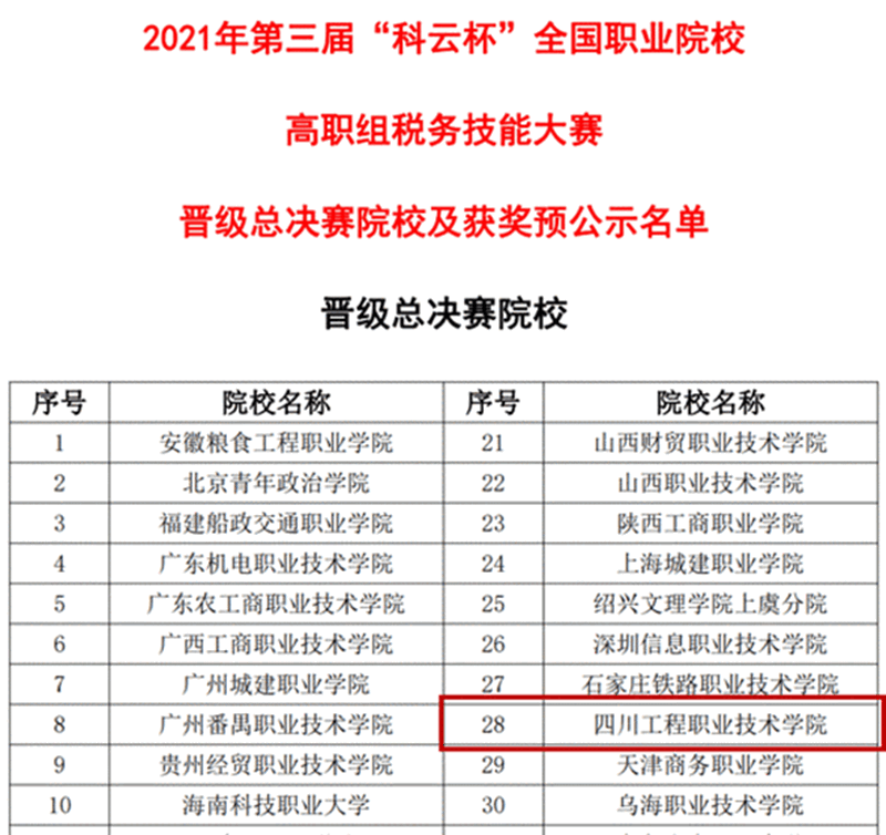 5月9日,我校两个团队在2021年第三届“科云杯”全国职业院校高职组税务技能大赛(网络比赛)四川赛区中分荣获一等奖,晋级全国总决赛。本次大赛由中国商业会计学会和全国财经职业教育集团举办、厦门科云信息科技有限公司承办。
