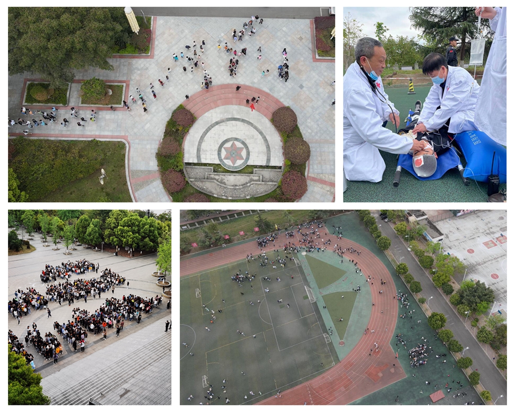 下午两点二十八分,党委委员、副院长向桢宣布“2021年防震减灾应急演练正式开始”,各宿舍的学生开始有序疏散到指定地点,紧接着伤员救护、清查现场、疏散区域集结、清点上报人数、总结点评等各环节依次进行,整个过程紧张而有序,全部安全、迅速地到达集合地点。本次演练共有6300余名学生参加。