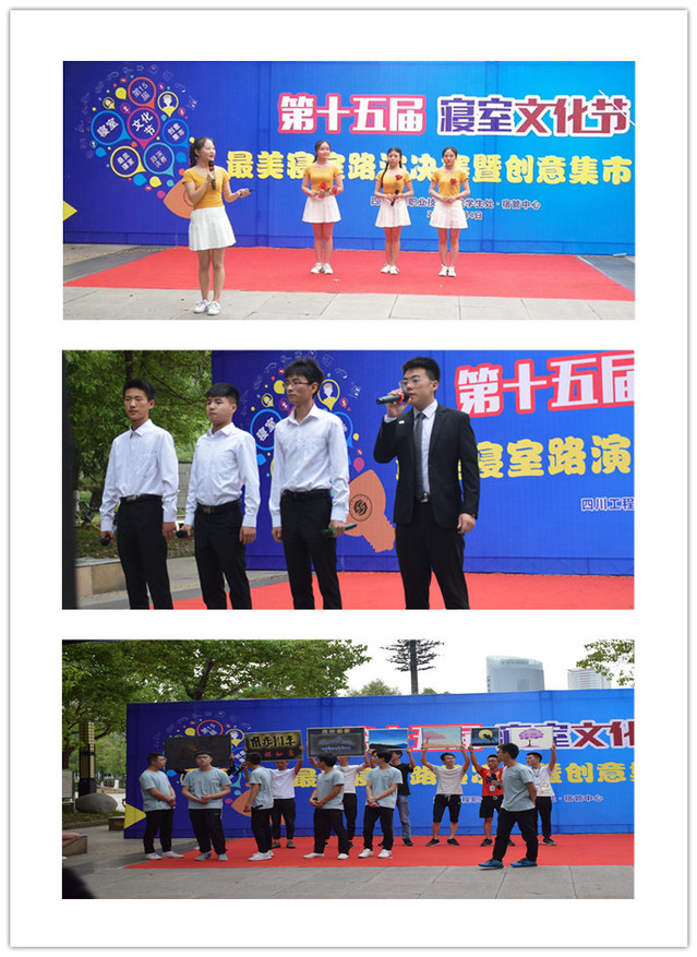 在第十五届寝室文化节中,有两个年仅三岁的新项目——“最美寝室”路演与“创意集市”活动,它们虽然年轻,一经问世却获得了众多喜爱。6月初,“最美寝室”路演决赛与“创意集市”开市活动如期举行。三教与五教的林荫道上,一边是欢声笑语的最美寝室决赛,一边是熙熙攘攘的创意集市现场。大型海报前,从全校16个参赛寝室中脱颖而出的佼佼者同台展演,用精炼的语言、精良的PPT、丰富的才艺全方位展示对宿舍文化内涵、文明建设途径的理解和实践心得;蓝色帐篷下,120个自发申报的作品上市交易交换,用绚丽颜色、美丽造型、精湛手工表达着学子对自我兴趣的坚持、对创新创意的追逐。