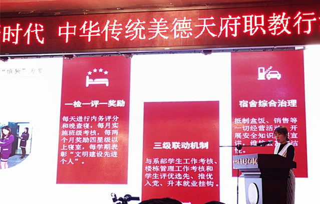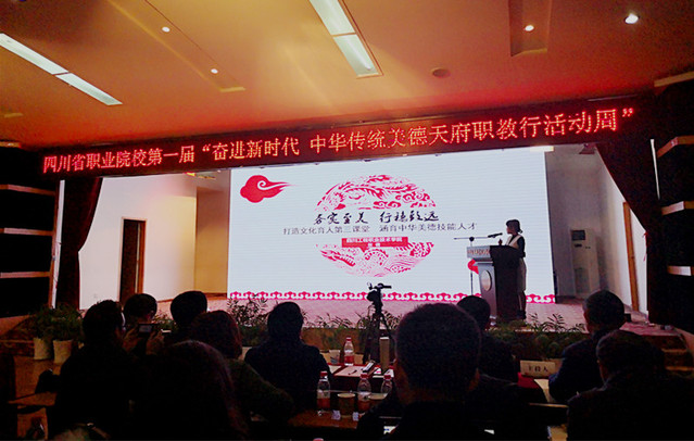 四川省教育厅决定从2018年开始,每年11月的最后一个星期为全省职教中华传统美德天府职教行活动周。11月26-27日,四川省第一届“奋进新时代,中华传统美德天府职教行活动周”开幕式正式举行,本届的主题为“传承中华传统美德,弘扬职教新风尚”,省教育厅副厅长戴作安、省职业教育与成人教育学会会长姜树林,全省近200名职业院校的代表参加了开幕式。