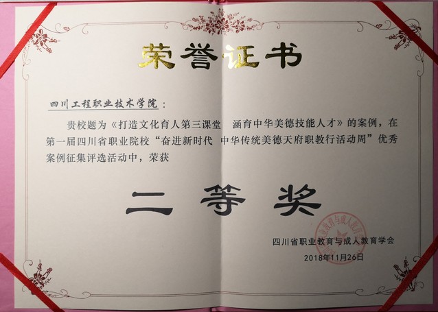 在此次交流会之前,我校报送的案例获得了第一届四川省职业院校“奋进新时代,中华传统美德职教行活动周”优秀案例征集评选活动二等奖。