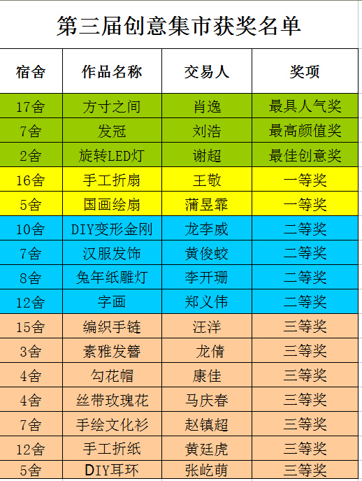 第十五届寝室文化节“创意集市”获奖名单
