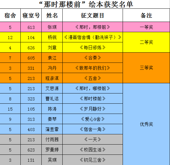 第十五届寝室文化节“那时那楼前”征稿获奖名单