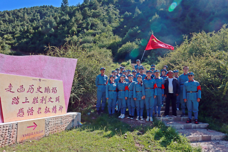 山顶中国工农红军三军同道北上纪念碑前学员合影