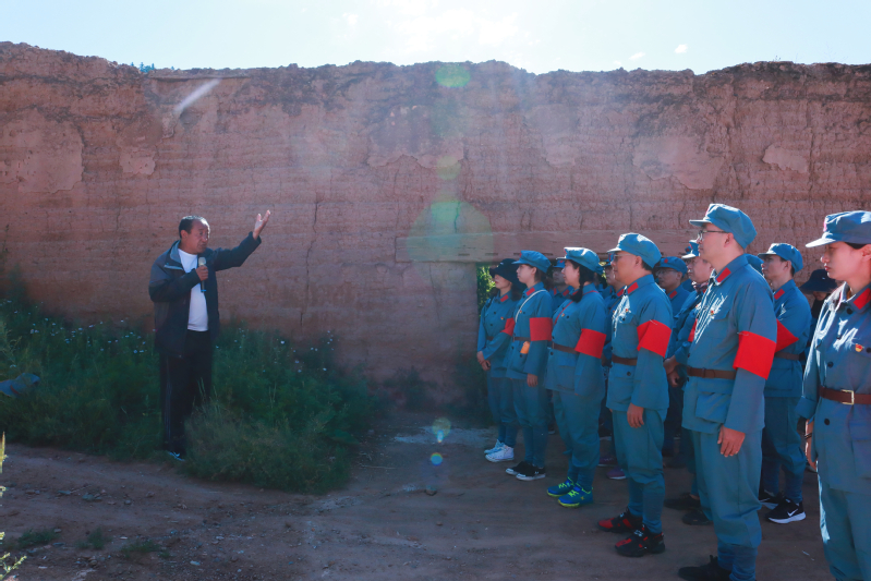 老红军后代供产同志在包座战役求吉寺战斗遗址前讲现场党课