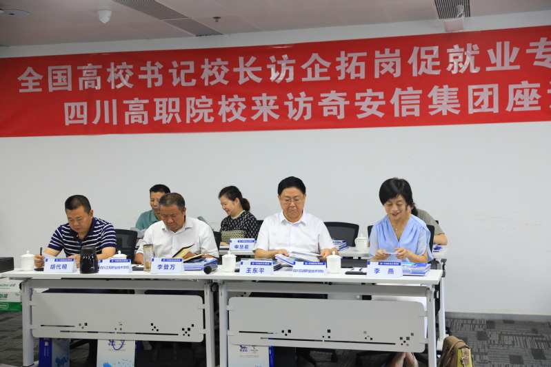6月28日,为落实教育部“书记校长访企拓岗专项行动”和四川省教育厅“书记校长联系百家企业”活动,学校党委书记李登万教授应邀出席奇安信科技集团股份有限公司组织的“访企拓岗促就业交流活动”,会议由奇安信科技集团股份有限公司助理总裁范冬梅主持。出席座谈会的还有四川省委网信办副主任黎召阳、四川省经济和信息化厅信息安全与基础设施处处长郭浩、四川交通职业技术学院党委书记王东平、绵阳职业技术学院党委书记钟乐海、宜宾职业技术学院副院长朱涛。