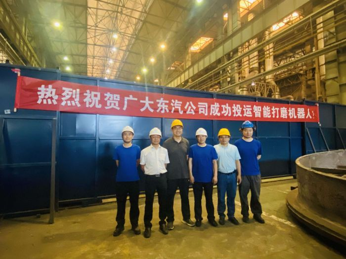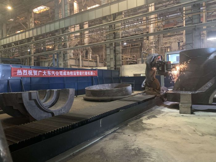 这是德阳广大东汽新材料有限公司对新引进的智能打磨机器人的一场投运测试。