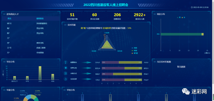 经济管理系双创团队“大数据职业优势评估与规划工作室”,自2020年起与四川省退役军人事务厅、四川省民政厅指导、四川省退役士兵就业创业服务促进会主办的“迷彩网”建立合作关系,为该网站提供人岗潜能匹配功能服务。仅在2022年5月的一场现场招聘会中,就有多名退役士兵通过工作室为迷彩网提供的服务,匹配出适合岗位。