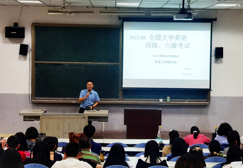 考前对疫情防控常态化下的考试组织、考务管理、安全保密、考点环境、医疗保障、人员培训等环节作了周密部署。教务处在网络平台提前发布《全国大学英语四、六级考试考生须知》及《关于2022年6月全国大学英语四、六级考试提示》。保卫处安排专人对学生提交的行程码、健康码进行审核。考试工作专项筹备小组对调频发射设备、保密室监控设备、考室、人脸识别系统等进行了提前检查,对考务工作全过程进行了细致推演。6月10日晚,主考向守兵副院长在第三教学楼A109教室召开全体监考人员的考务培训会,要求工作人员明确任务分工,并严格按照考试规程实施操作,为考生提供全方位、人性化和科学规范的考务服务。