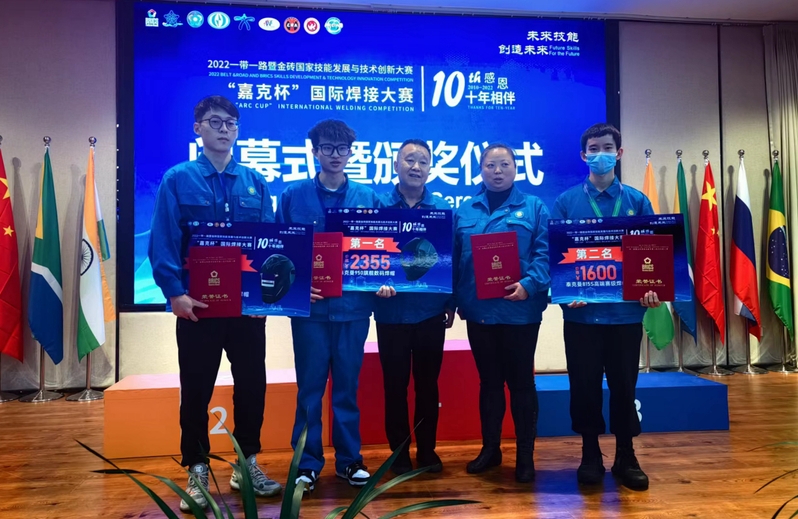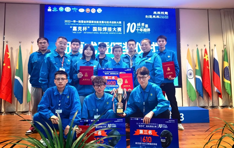 2022一带一路暨金砖国家技能发展与技术创新大赛之“嘉克杯”国际焊接大赛于2022年11月16日至11月21日在四川省成都市成都工贸职业技术学院举行。本届大赛荟聚了57个参赛队共211名参赛选手,其中中国境内47支参赛队共190名参赛代表分别来自15家中央企业、32家高/中等职业院校和相关企业。我校由孙学杰领队,教练肖宏和窦红强带领10名学生组队,参加了“第九十届焊接技能国际大赛”和“第九届焊接机器人国际大赛”两个大项共5个小项的比赛。选手们克服重重困难,勇于拼搏,稳定发挥,最终荣获团体金奖(第1名),一等奖3项,二等奖2项,三等奖2项的佳绩,女选手张采平获得巾帼英雄奖,教练获得金牌教练称号。