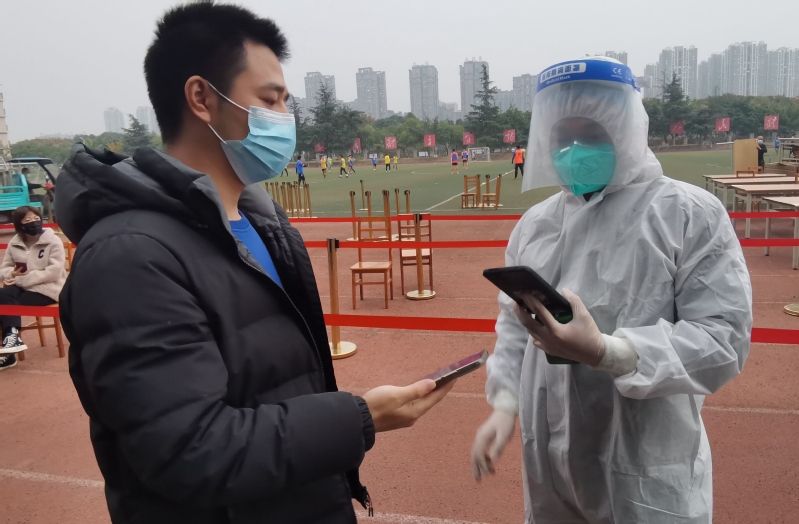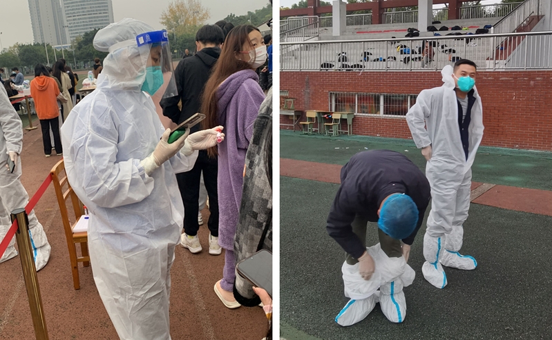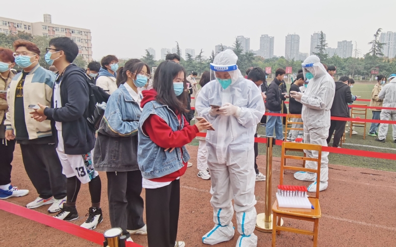 老师们上午行课,下午变身志愿者,保障全校师生核酸检测分批次、有序进行