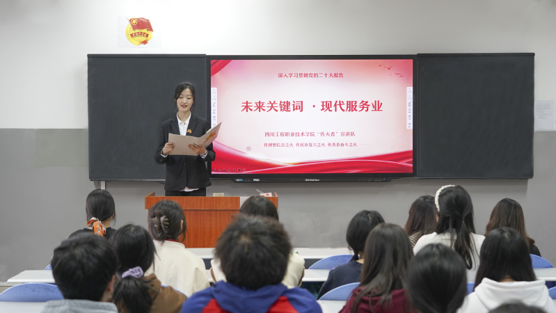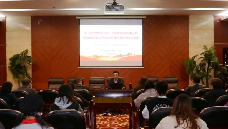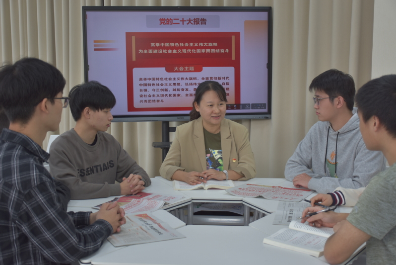 为深入学习宣传贯彻党的二十大精神,把全校广大党员干部和师生员工的思想统一到党的二十大精神上来,把力量凝聚到党的二十大确定的各项任务上来,根据《中共中央关于认真学习宣传贯彻党的二十大精神的决定》等文件精神,学校持续深入开展党的二十大精神宣讲活动。学校采用学校领导带头讲、基层书记示范讲、宣讲队员生动讲、思政教师辅导讲、教师学生交流讲、线上平台灵活讲、分层分众广泛讲等方式,推动党的二十大精神进课堂、进学生社区、进学生组织、进班级、进产学研平台、进网络、进农村。党委书记李登万,党委副书记、院长肖峰均带头面向师生进行宣讲,其他党委常委、校领导和专家学者、基层党组织书记、先进典型的宣讲也在有序推进。