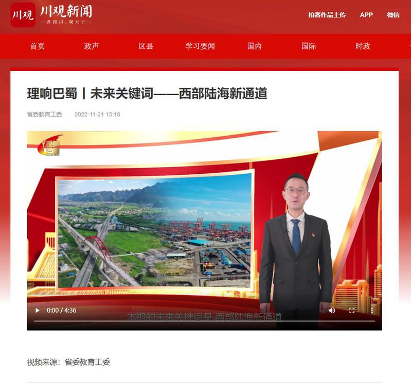 基层党员唐咏春主讲的《未来关键词·绿色生产生活方式》和唐鹏的主讲《未来关键词·西部陆海新通道》2部党的二十大精神宣讲微视频,被省委教育工委推荐到省委宣传部“理响巴蜀”栏目,经遴选在“学习强国”“川观新闻”“四川观察”上展播。(文/图 党委宣传部、马克思主义学院、交通工程系、经济管理系、电气信息工程系、艺术系)