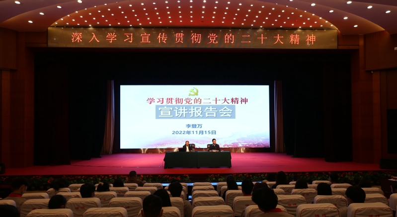 为深入学习宣传贯彻党的二十大精神,结合学校科技文化艺术节的“工院大讲堂”和学校党委常委、校领导讲思政课机制,11月15日下午3点,学校党委书记李登万教授在二教演播厅举办学习贯彻党的二十大精神宣讲报告会,党委副书记、纪委书记郑辅春主持报告会,全校学生党员、团学干部和部分教师代表聆听了报告会。