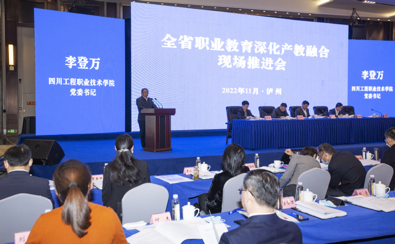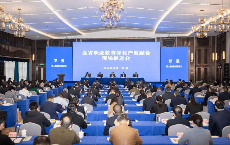 11月17日,全省职业教育深化产教融合现场推进会在泸州召开,副省长罗强出席会议并讲话。省政府副秘书长刘全胜出席会议,省委教育工委书记李建勤主持会议。省委教育工委、教育厅分管负责同志,省发展改革委、经济和信息化厅、科技厅、财政厅、人力资源社会保障厅、农业农村厅、商务厅、省国资委、省中华职教社分管负责同志;各市(州)政府分管负责同志,教育主管部门主要负责同志;各高等职业学校,部分中等职业学校主要负责同志;行业协会、产业园区、企业代表参加会议。