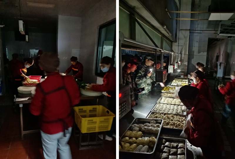 11月17日停电当天,全体食堂员工在凌晨5点就开始了忙碌的准备工作。“没有灯光不用怕,咱们就是打着手电筒,也要为老师和同学们奉上热气腾腾的早饭”;在确定竹苑餐厅无法保电供应的同时,竹苑食堂全体员工自发请缨到其它食堂帮厨,解决其他保供食堂供餐压力,确保师生能够及时、方便就餐;在得知学校北区宿舍晚上不供电的消息后,松苑餐厅员工不顾一整天起早摸黑的劳累和疲惫,主动延长服务时长,开放就餐大厅,为同学们提供更多学习、休息、餐饮和充电的便利。感谢后勤管理处对食堂保供的大力支持!