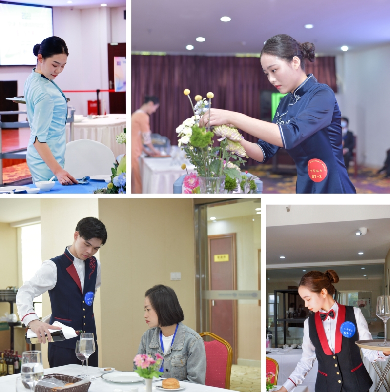 本赛项以“借鉴国际标准、突出中国特色、贴近生产实际、体现工作过程”为宗旨,由宴会预订、中餐服务和西餐服务三个分项组成,考核高职旅游大类专业的学生在餐厅服务过程中的整体综合素质及能力,强调工作过程的规范化、实境化、流程化和职业化,检验学生在餐厅服务工作中的创新设计能力、灵活应变能力、对客服务能力、社交沟通能力、组织管理能力、产品营销能力等综合素质及核心能力。此次比赛因为疫情原因,省赛延后于国赛进行,旅游系派出的两支团队敢于和成都职业技术学院和绵阳职业技术学院的两支国赛团队较量,并展现出了较高的技能水平,教练团队也学习到了国赛经验,有利于今后更好地培养和训练选手。