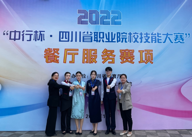 11月3日至6日,由四川省教育厅主办、成都职业技术学院承办的“中行杯”2022年四川省职业院校技能大赛餐厅服务赛项在成都新津举行。来自省内各大高职院校26支代表队共52名技能精英云集于此,各展风采。旅游管理系2021级酒店管理与数字化运营专业的程涓、刘曾玉、黎倩和2021级旅游管理专业的唐金阳四位学子组成两支团队,经过紧张激烈角逐,双双荣获二等奖。