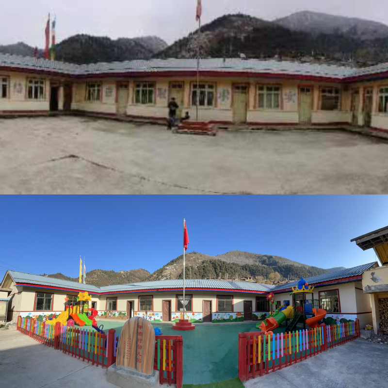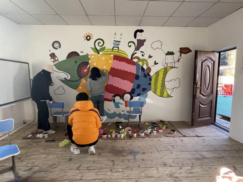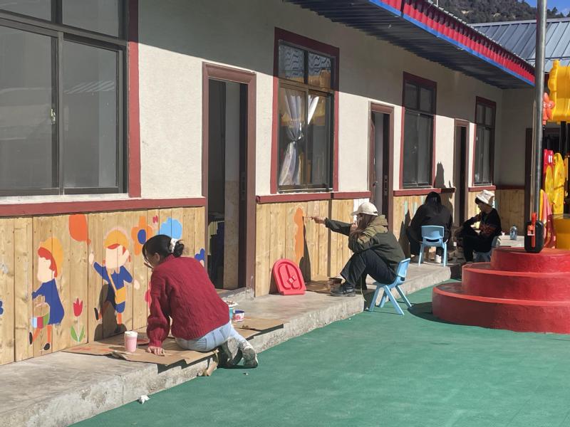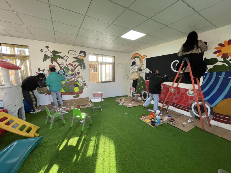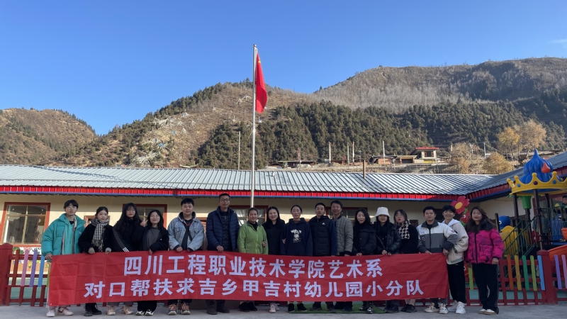 11月3日-7日,受学校党委组织部委派,艺术系党总支组建专项工作队前往阿坝藏族羌族自治州若尔盖县求吉乡甲吉村进行定点帮扶工作。历时5天,工作队师生克服了高海拔、低温等困难,高质高效完成了幼儿园改造后期环创任务,齐心协力为幼儿园小朋友营造了一个梦幻多彩的校园环境。师生工作现场幼儿园改造前后对比艺术系工作队与学校驻村干部李晓军、冉传海,幼儿园教师仁真措、夺吉机在幼儿园前(文/图 艺术系)