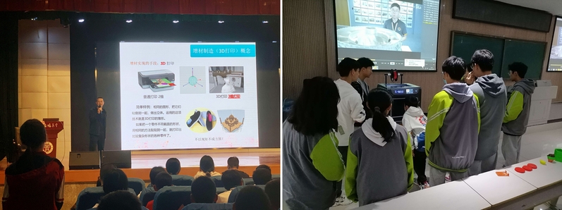 讲座环节,韩俊峰老师从增材制造的概念、兴起、分类及应用等几个方面深入浅出的介绍了增材制造技术,为三中师生打开了新“视界”;展示环节,2021、2022级增材制造专业学生现场为三中师生打印了定制化纪念品。科技讲座和现场展示的内容为德阳三中广大师生推广普及了3D打印技术,宣传了我校专业建设情况,受到了三中师生的广泛好评。(文/图 招生就业办 四川省冲压发动机先进制造技术工程实验室)