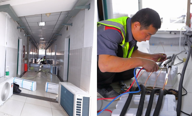 要在一个月内完成全部空调安装,任务重、工期紧,后勤管理处与相关部门通力合作,在保障全面落实疫情防控措施到位的前提下,力求保质保量将每一台空调安装落到实处。
