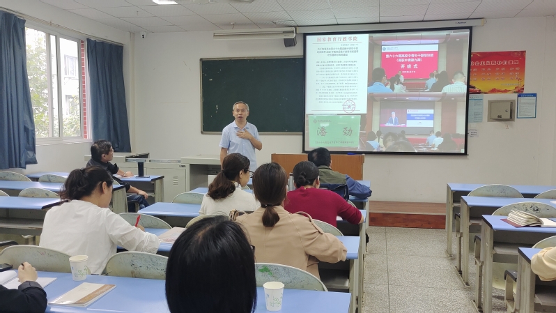 会上,马克思主义学院党总支书记、院长潘劲教授图文并茂地和大家分享了暑期赴北京参加国家教育行政学院中青年干部培训的主要内容以及此行的收获、感悟。