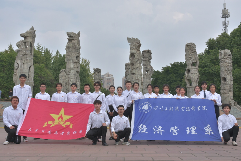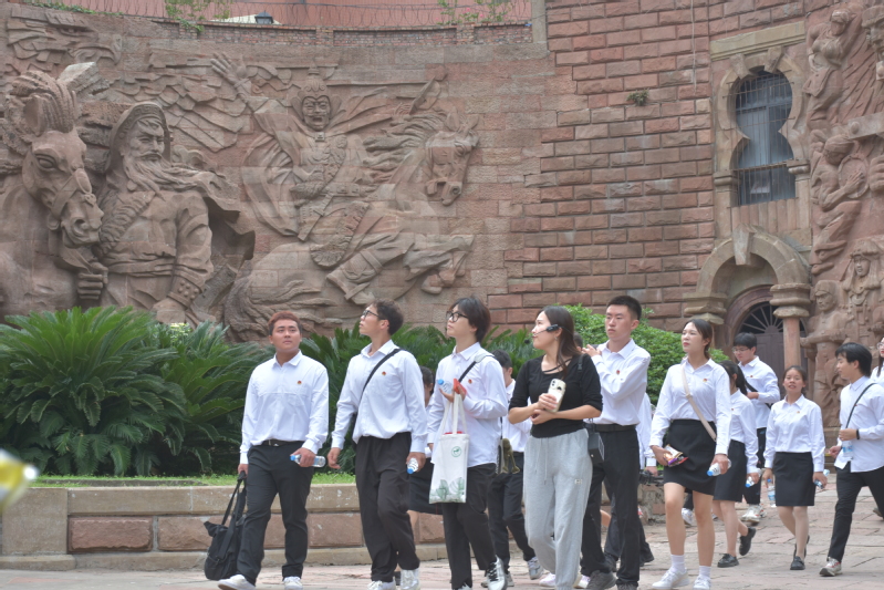 本次实践活动邀请了来自德阳市公园管理处的尹老师现场为团队师生进行讲解。参观学习路线从公园北门开始到南门结束,绵延一千余米,经过尹老师的细致生动的讲解,师生们学习了解到:德阳石刻公园是我国最大的城市现代艺术石刻雕塑群,由“生命之歌、艺术长廊、智慧之光、中华魂、十二生肖柱”等五组大型浮雕群、三十五个木雕拱门、三十二根蟠龙石柱组成,运用圆雕、透雕、浮雕、建筑与墙体的各种空间组合,表现自然、生命、民族团结等宏大主题。学习过程中,大家纷纷惊叹于石雕群所表现出磅薄大气的中华文明与生生不息的民族气质,为自己能生活在这样伟大的国度感到自豪。