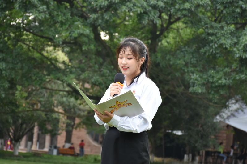 活动的第二环节,传火者宣讲队成员在宏伟的石雕艺术与园内秀美风光的环抱中,以“迎接党的二十大 体悟中华廉洁文化”为主题,分享了以东汉诸葛亮、北宋包拯、明朝于谦为代表的古代廉洁典范佳话,以焦裕禄、孔繁森、张桂梅为代表的现代廉洁典范事迹。讲到动容处,不免热泪盈眶,师生在廉洁故事的传扬与分享中不无为中华民族融入骨血的廉洁气节所感动。