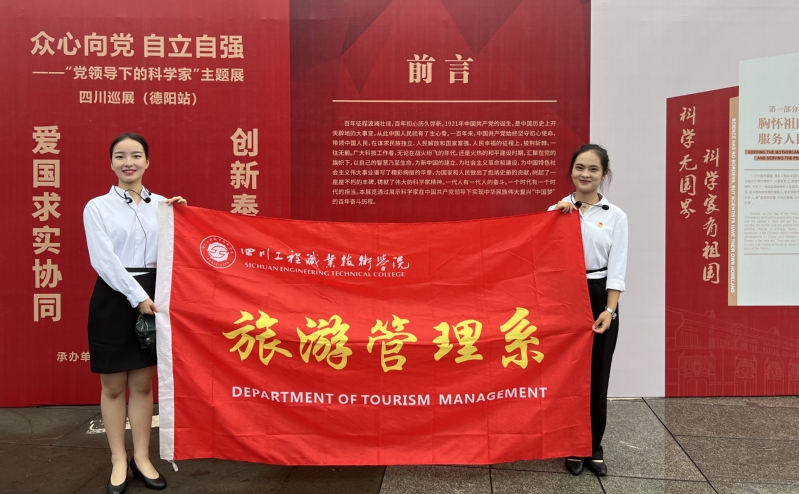 由中国科学技术协会、中华人民共和国科学技术部、中国科学院、中国工程院、国家国防科技工业局、中国国家博物馆共同主办,由北斗航天卫星应用技术集团有限公司等47家单位协办的“众心向党·自立自强——党领导下的科学家”主题展览于9月16日在德阳文化馆举行,活动旨在普及科学知识、弘扬科学精神、传播科学思想,进一步提高全民科普知识储备,激发科技创新创造活力。我校旅游管理专业学生受德阳市科学技术协会邀请赴展参与志愿讲解工作。