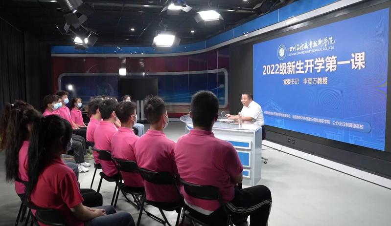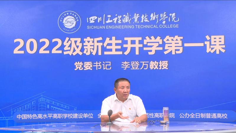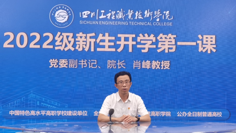 党委副书记、院长肖峰教授首先祝贺全国4900多名青年成为四川工程职业技术学院的新主人!他向同学们介绍了学校的底蕴与所取得的成就,他表示,选择成为一名职业院校学生,同学们就有了自己特殊的责任和光荣的使命。从入学开始,“高素质技术技能人才”“能工巧匠”“大国工匠”“工匠精神”这些词汇将伴随同学们的大学生活,甚至一生。肖峰院长和2022级新同学交流了三个话题:“立志”“练技”与“守心”。他在“第一课”中引用苏轼的故事,引用学校客座教授高凤林的故事,引用学校优秀校友、中华技能大奖获得者何波的故事,望同学们立鸿鹄之志,练就过硬的技能,坚守纯净的内心,方能不负青春,不负大学时光。同时,他提出,请同学们积极锻炼、调节情绪,做好角色转变的身心准备;也要收拾行囊,做好个人疫情防护,听从安排,做好行动上的准备。疫情结束后,线下相见时,希望同学们眼中有光,心中有梦想!(文/图 党委宣传部)