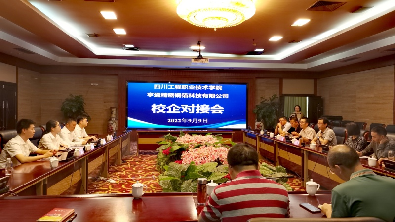 亨通精密铜箔科技有限公司张总对我校的邀请表示感谢,对我校60多年来服务行业和地方经济建设取得的辉煌成就表示钦佩。公司通过宣传片、PPT全面展现了公司的发展历程、非凡成就以及未来在德阳的产业布局和目标愿景,期待与学校建立多维度、全方位合作意愿,并带来2023届200余名毕业生招聘计划。