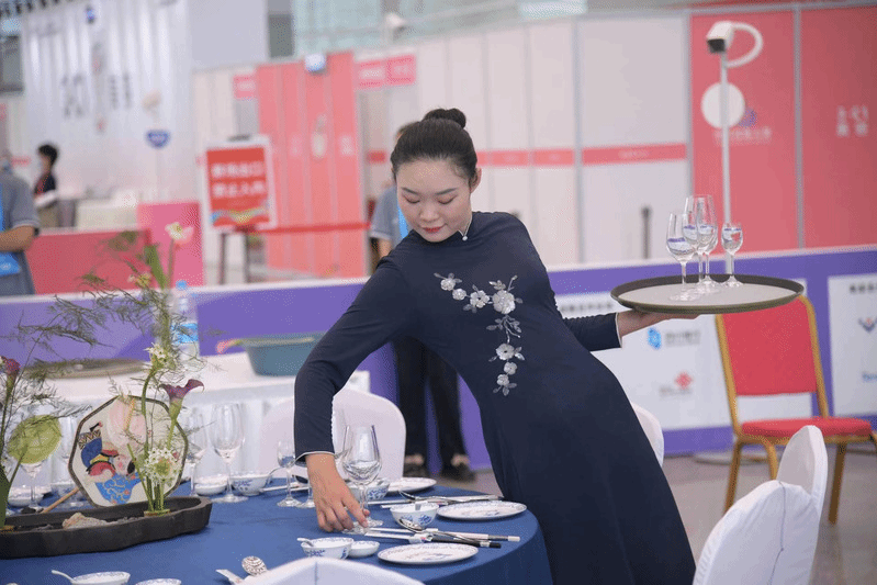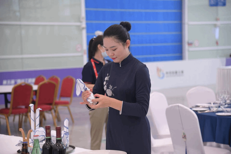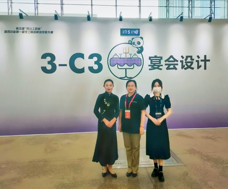 旅游管理系2021酒店管理与数字化营运专业一班学生程涓和指导教师团队在暑假期间历经高温酷暑的艰苦训练,程涓同学代表德阳代表队与其他13个城市代表队选手进行角逐,选手分别完成宴会摆台(“台面设计”“台面摆放”)、服务技能(“餐巾折花”“斟酒服务”)、主题设计及造型(“主题设计方案”“主题设计说明与答辩”“主题造型”)、分餐服务、综合评价(“餐巾折花展台展示”“仪容仪表”)共五个模块九个环节的展开激烈角逐。程涓最终不负众望在赛场冷静发挥,展现了良好的风采,最终夺得第二名,荣获二等奖。