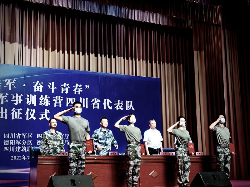 此次活动,全国32个省市共计600余人参赛。我校人民武装部在接到军分区通知后立刻向分管领导汇报,并联合学校教务处、学生处、各系部拟定了校内选拔方案,最终选派于朝中(艺术系)、杨清柳(艺术系)、罗丽(艺术系)、张子豪(建筑工程系)、张友彬(材料工程系)、刘紫雯(经济管理系)6位同学参加德阳市军分区的选拔,经过近一月的集训,于朝中、杨清柳、张子豪3人成功入选四川代表队与其余13人一起出征南京。