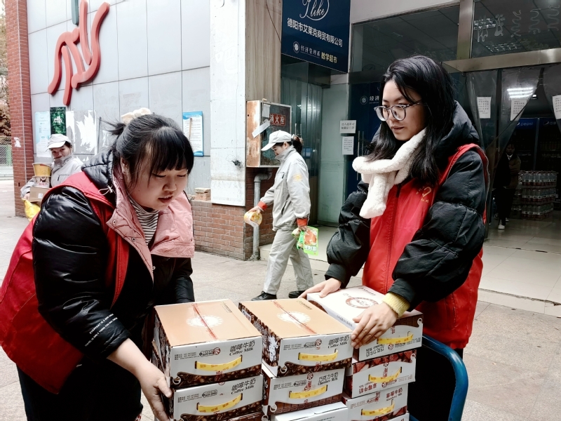 疫情期间,公司员工全体自愿入驻学校。她们说:“我们也是妈妈,工院的孩子就是我们的孩子。我们希望我们的孩子能随时买到新鲜的面包、牛奶。”(文/图 德阳市艾莱克商贸有限公司)