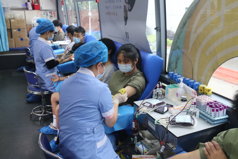 当献血车驶入校园后,学校师生主动了解献血相关知识、流程和注意事项,并踊跃报名参与献血。电气信息工程系50余名志愿者积极为献血师生提供现场服务和帮助,有序组织进行了血型测定、体检、抽血化验、献血,并为献血者送上糖水和食物。现场大部分同学都是第一次献血,他们纷纷表示通过自己的一点付出,为社会做出一份贡献,感到十分快乐和光荣。