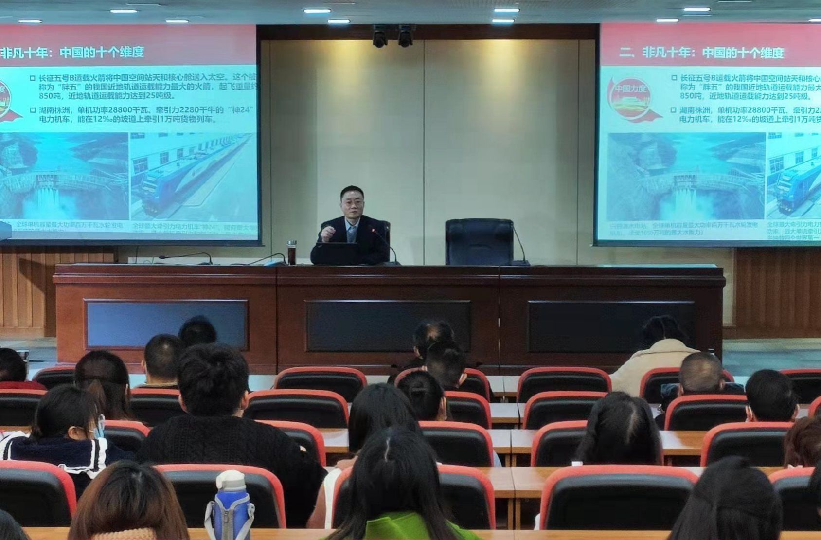 向守兵副院长主要从“党的二十大报告中的新观点、新论断、新思想”“非凡十年,中国的十个维度”“职教十年,我国已建成世界规模最大的职教体系”“中国式现代化,职业教育大有可为”等四个方面为师生开展了内容丰富、内涵深刻的宣讲。