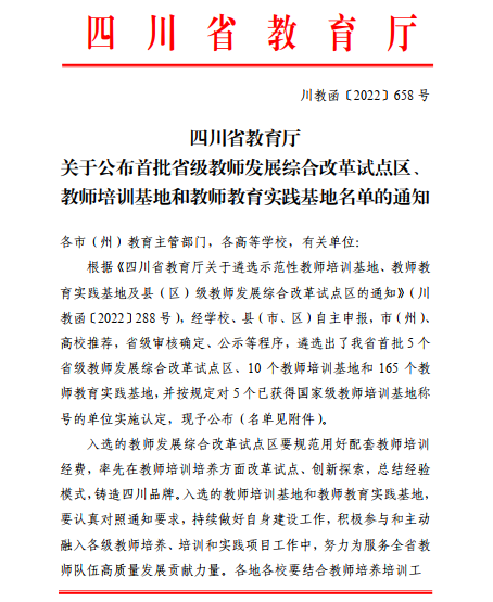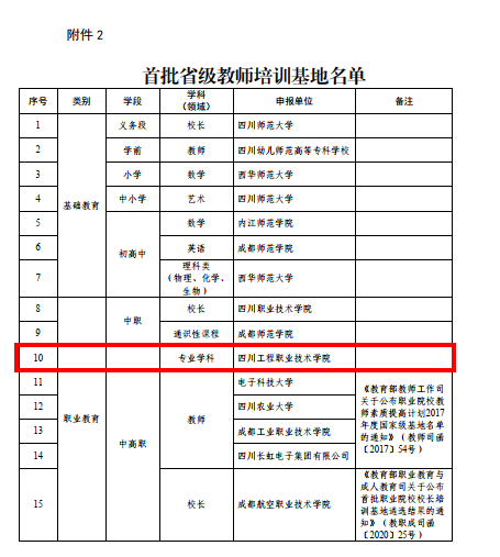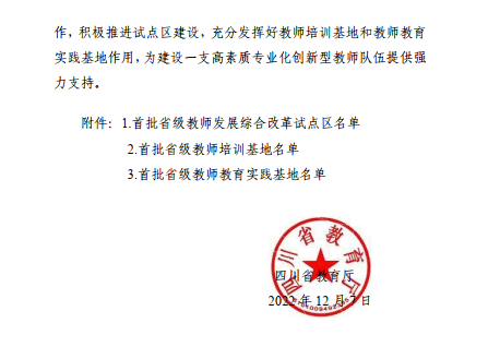 2022年12月7日,四川省教育厅公布首批省级教师培训基地名单,我校成功入选职业教育省级教师培训基地。