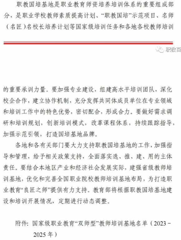 国家级职业教育“双师型”教师培训基地遴选是深入贯彻党的二十大精神,落实中共中央办公厅、国务院办公厅印发《关于推动现代职业教育高质量发展的意见》和《国务院关于印发国家职业教育改革实施方案的通知》要求,健全职业教育教师培训机制,优化教师培训基地布局的重要举措。基地的成功申报,是对我校综合办学实力以及师资培训工作的充分肯定,更是我校新时代教师队伍建设的又一重大突破,充分彰显了我校高水平、高素质、高质量“双师型”教师队伍建设取得的显著成效。
