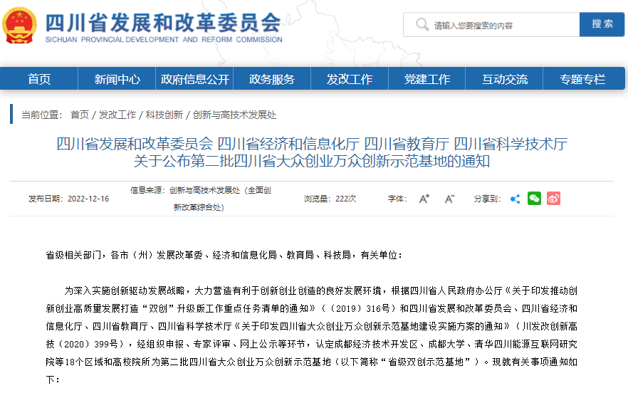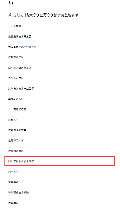 近日,四川省发展和改革委员会网站发布了《关于公布第二批四川省大众创业万众创新示范基地的通知》,我校被认定为第二批省级双创示范基地。
